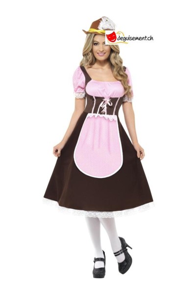 Tavern Girl Costume, Brown, Long Dress with Attached Apron