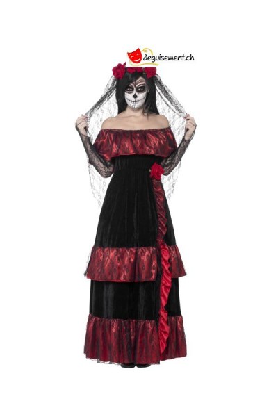 Day of the Dead Bride Costume, Black, with Dress & Rose Veil
