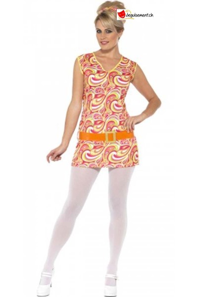 Déguisement Lady Hippie femme taille uniqueInclus: Robe avec ceinture et serre-tête