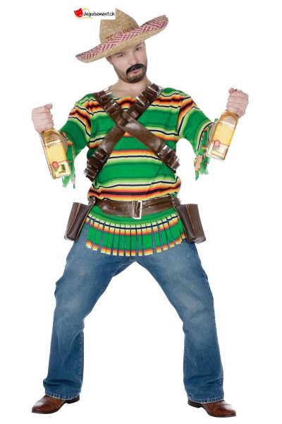 Déguisement Mr. Tequila taille uniqueInclus: haut Serape, bandoulières d'épaule avec support pour verre à liqueur, ceinture avec 2 étuis de bouteille, 8 verres à shot, sombrero