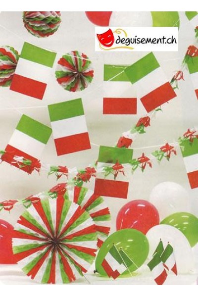 Kit decoration Italie:-2 guirlandes plastique Italie - 5m - 10 pavillons de 20x30cm