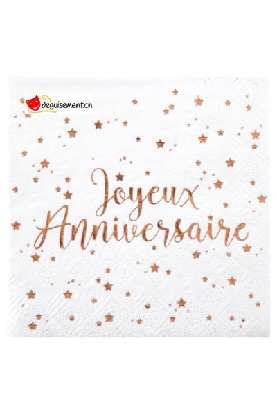 Serviette Joyeux Anniversaire - rose gold - 20 pcs